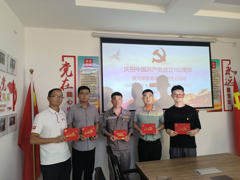 在中國共產(chǎn)黨成立102周年到來前夕,6月30日下午,興明礦業(yè)黨支部組織全體黨員開展慶“七一”講黨課暨集體過政治生日活動。