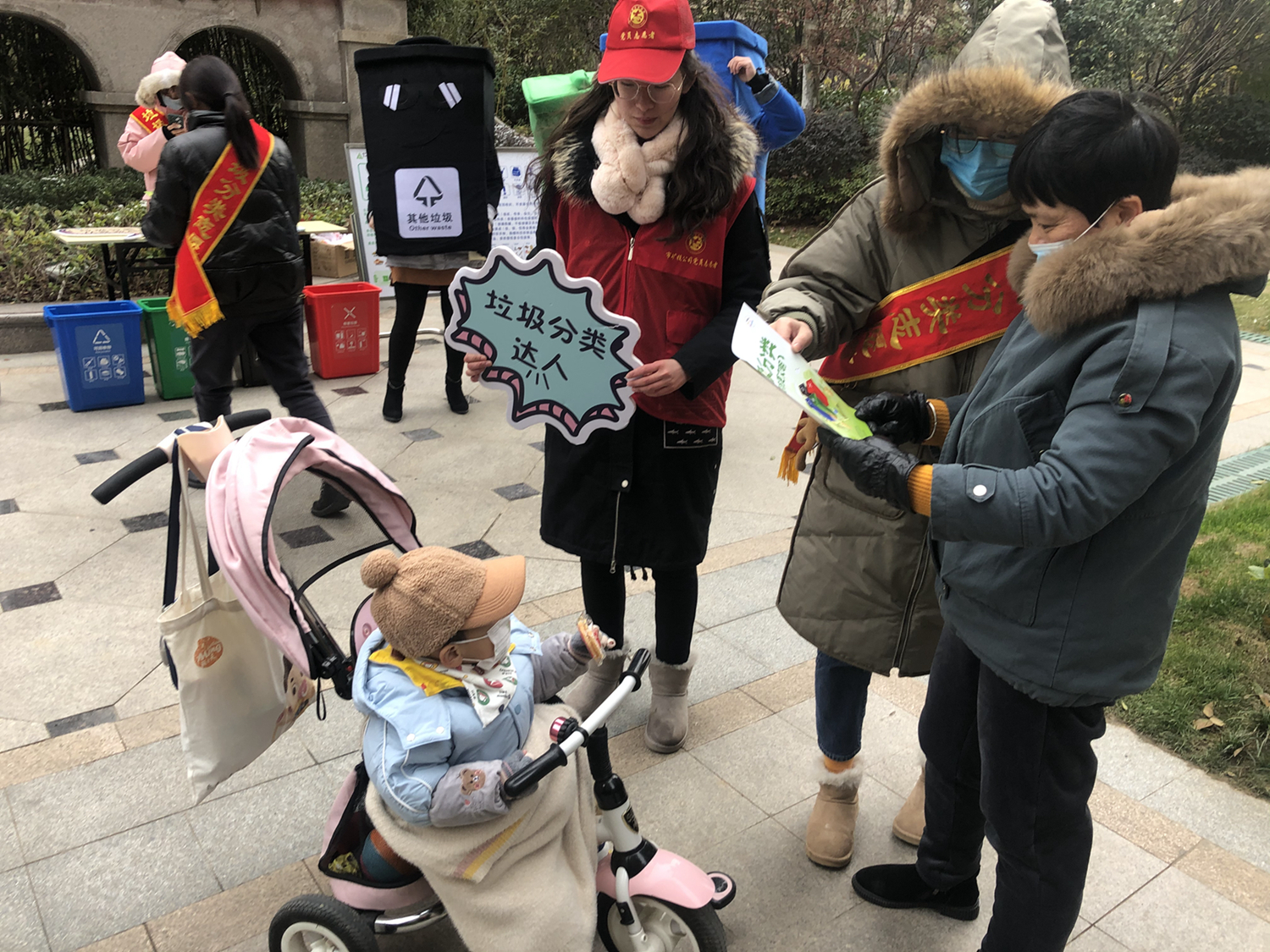 活動(dòng)中,志愿者們身穿“可回收物”、“廚余垃圾”、“有害垃圾”、“其他垃圾”四色玩偶服,通過(guò)向居民發(fā)放宣傳單頁(yè)、開(kāi)展“垃圾分分樂(lè)”、“垃圾分類(lèi)跳棋”游戲等方式,向其宣傳垃圾分類(lèi)相關(guān)知識(shí)。活動(dòng)現(xiàn)場(chǎng)氣氛火熱,社區(qū)居民不畏嚴(yán)寒,紛紛從家中拿出廢舊電池、舊水銀溫度計(jì)等有害垃圾換取垃圾袋。