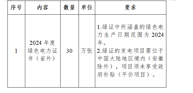 1.1項目名稱:2024年度綠色電力證書采購項目(興全)