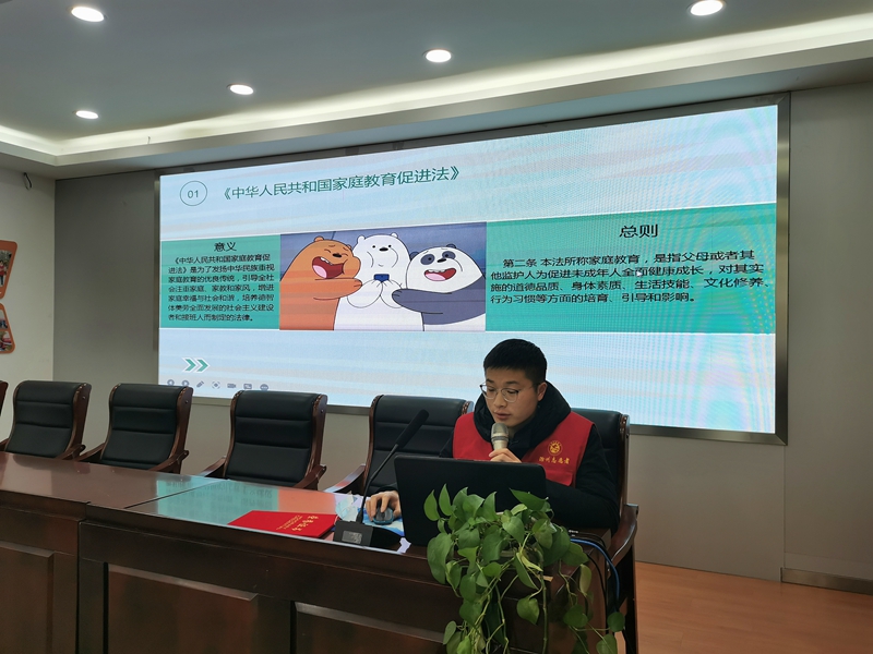 守護(hù)童年 相伴成長(zhǎng)。舉辦《法律知識(shí)小課堂》普法講座,向社區(qū)未成年人宣講《中華人民共和國(guó)未成年人保護(hù)法》《中華人民共和國(guó)家庭教育促進(jìn)法》,引導(dǎo)他們從小樹(shù)立法治觀念,增強(qiáng)法律意識(shí),更好地成長(zhǎng)成才。