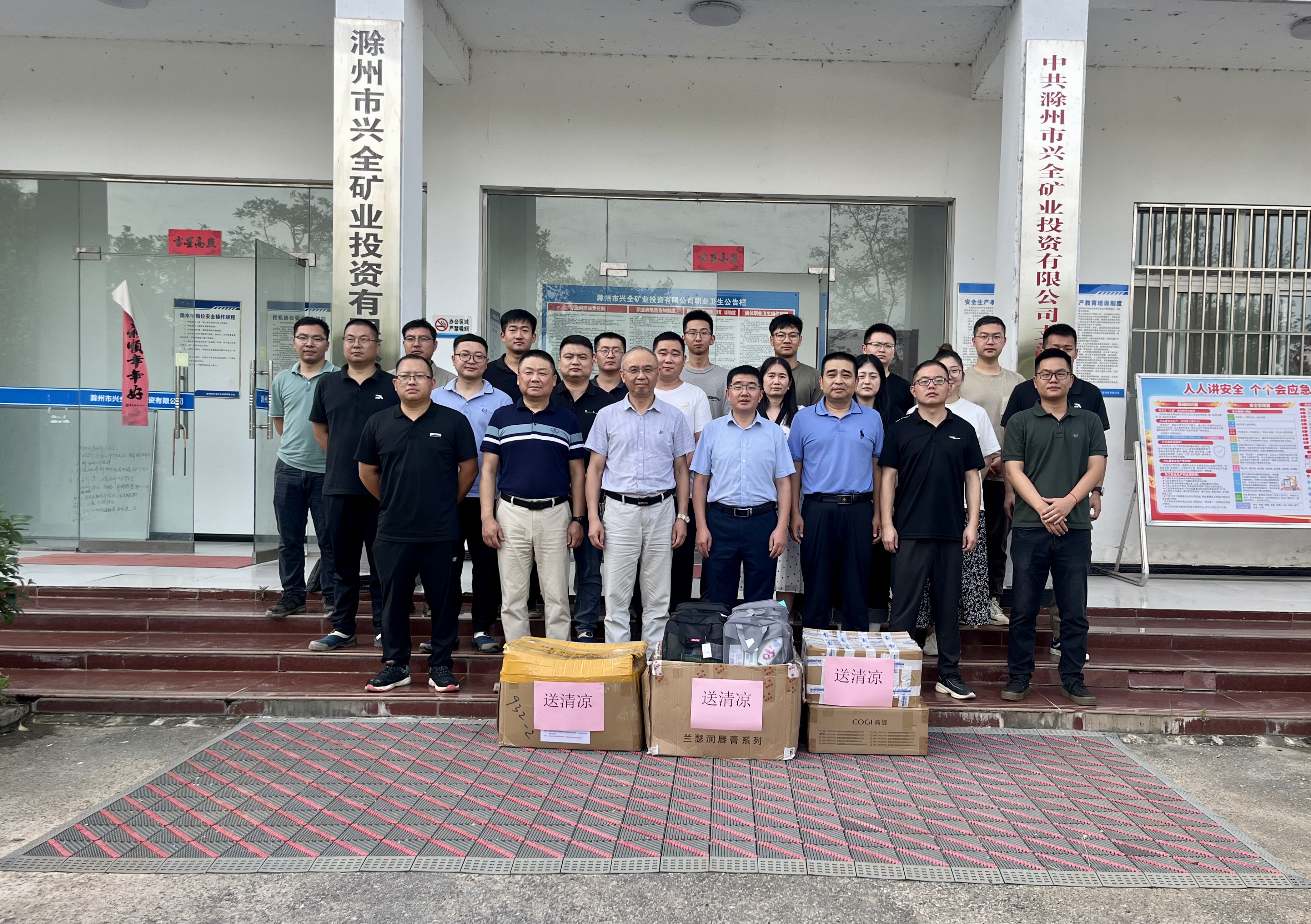 王峰一行為興全礦業(yè)全體職工送來清涼物資,叮囑大家要做好個(gè)人防護(hù)、注意防暑降溫,確保以良好的身體狀況和精神狀態(tài)完成各項(xiàng)工作。