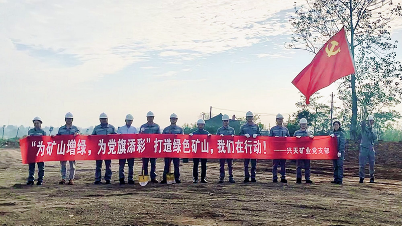 綠色礦山,黨員先行。興天礦業(yè)黨支部深入貫徹落實習近平總書記關(guān)于生態(tài)文明建設(shè)重要論述,于9月22日開展了“為礦山增綠、為黨旗添彩”主題黨日活動。植樹活動現(xiàn)場,黨員干部帶領(lǐng)公司職工分工協(xié)作、互相配合,揮鍬鏟土、扶直苗木、培土圍堰,道道工序一絲不茍,場面熱火朝天。