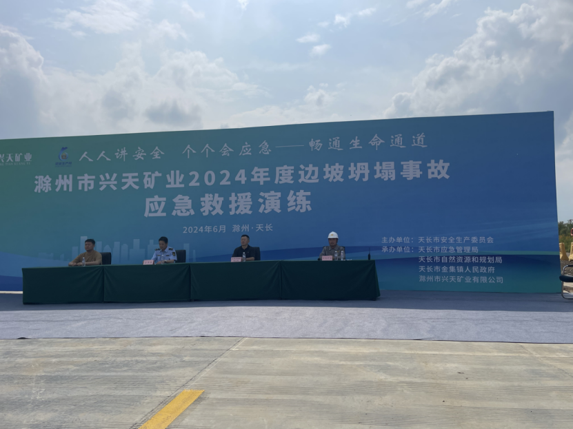 為提高突發(fā)事件應(yīng)對能力,檢驗(yàn)突發(fā)事件應(yīng)急預(yù)案可操作性,6月27日,興天礦業(yè)組織開展邊坡坍塌事故應(yīng)急救援演練,天長市自然資源和規(guī)劃局以及金集鎮(zhèn)政府受邀蒞臨指導(dǎo)。
